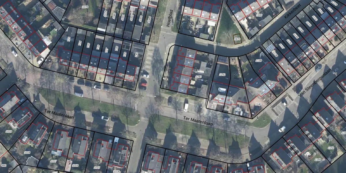 Hoefblad 47 is gelegen op kadastraal perceel WDB02H1143. Deze kadastrale aanduiding is uniek en wordt gebruikt door het Kadaster om eigendomsrechten en andere zakelijke rechten vast te leggen. Het perceel maakt onderdeel uit van de kadastrale gemeente Woudenberg.