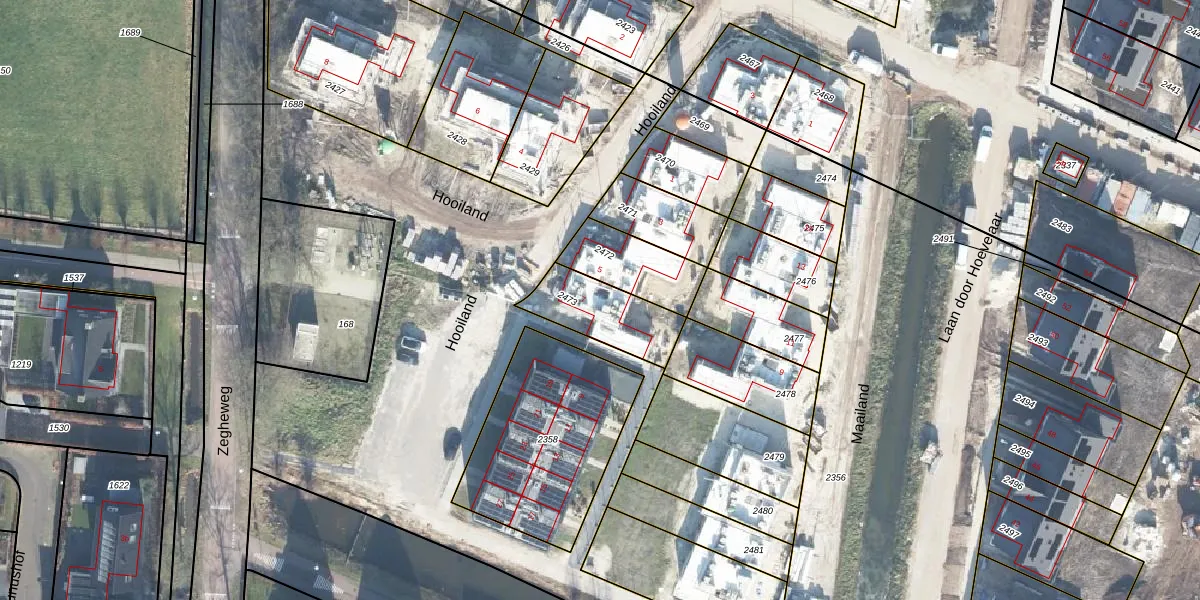 Hooiland 7 is gelegen op kadastraal perceel WDB02G2473. Deze kadastrale aanduiding is uniek en wordt gebruikt door het Kadaster om eigendomsrechten en andere zakelijke rechten vast te leggen. Het perceel maakt onderdeel uit van de kadastrale gemeente Woudenberg.