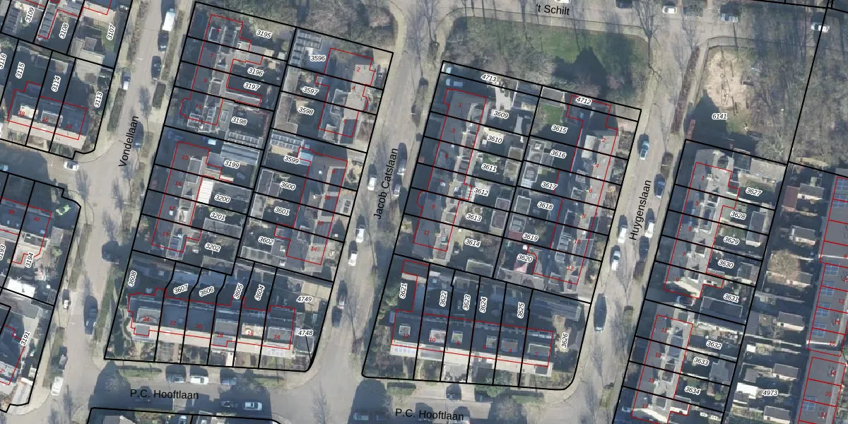 Gebruik de zoekbalk of klik op een perceel voor informatie over de adressen binnen dit perceel.