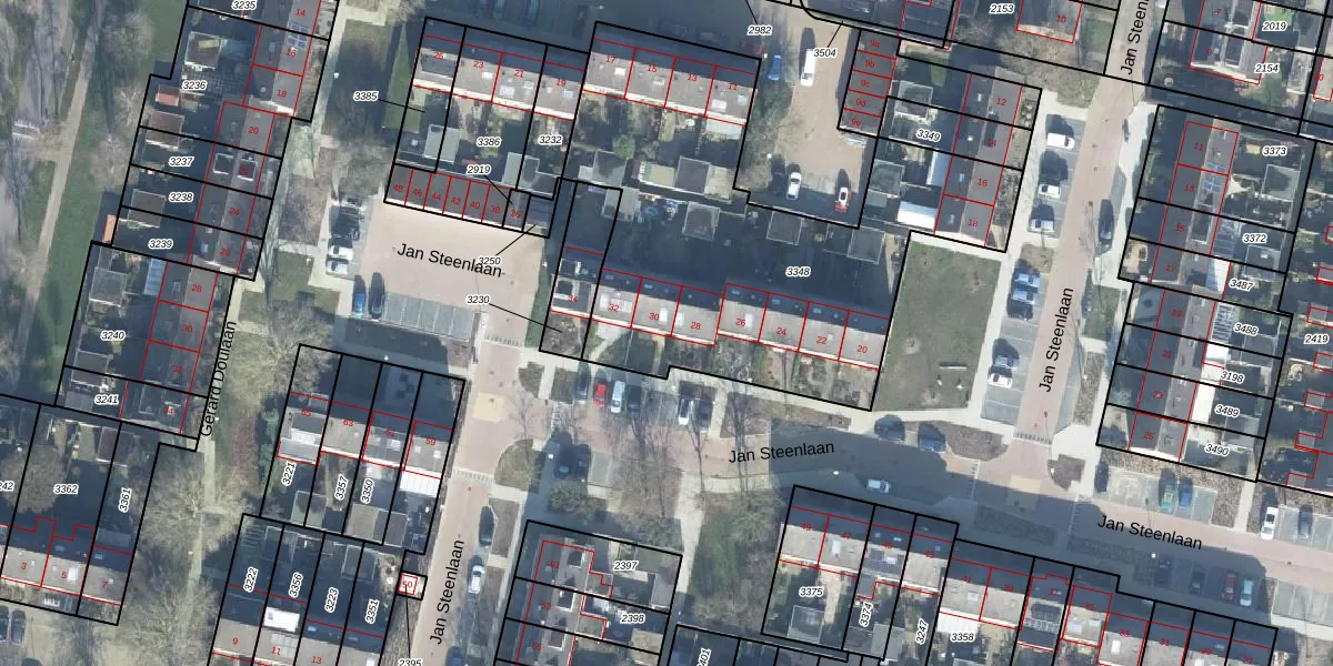Jan Steenlaan 30 is gelegen op kadastraal perceel WDB02E3348. Deze kadastrale aanduiding is uniek en wordt gebruikt door het Kadaster om eigendomsrechten en andere zakelijke rechten vast te leggen. Het perceel maakt onderdeel uit van de kadastrale gemeente Woudenberg.