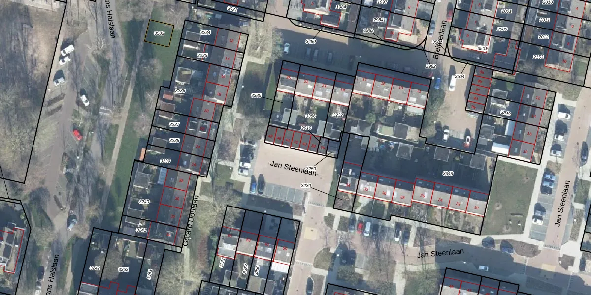 Jan Steenlaan 42 is gelegen op kadastraal perceel WDB02E3386. Deze kadastrale aanduiding is uniek en wordt gebruikt door het Kadaster om eigendomsrechten en andere zakelijke rechten vast te leggen. Het perceel maakt onderdeel uit van de kadastrale gemeente Woudenberg.