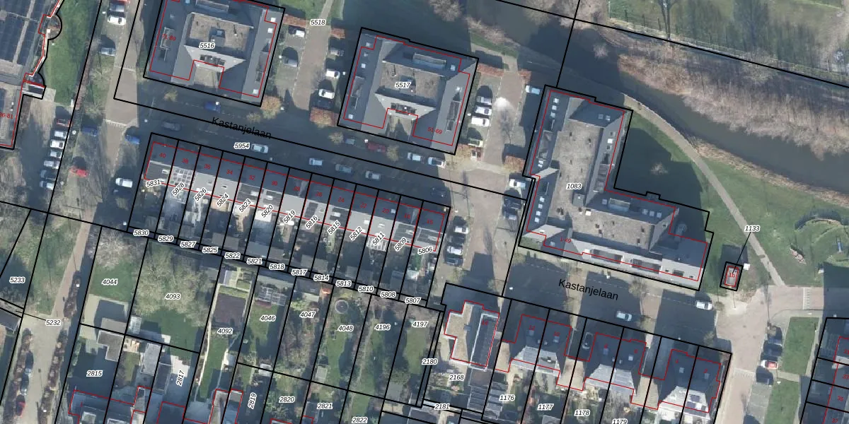 Kastanjelaan 16 is gelegen op kadastraal perceel WDB02B5806. Deze kadastrale aanduiding is uniek en wordt gebruikt door het Kadaster om eigendomsrechten en andere zakelijke rechten vast te leggen. Het perceel maakt onderdeel uit van de kadastrale gemeente Woudenberg.