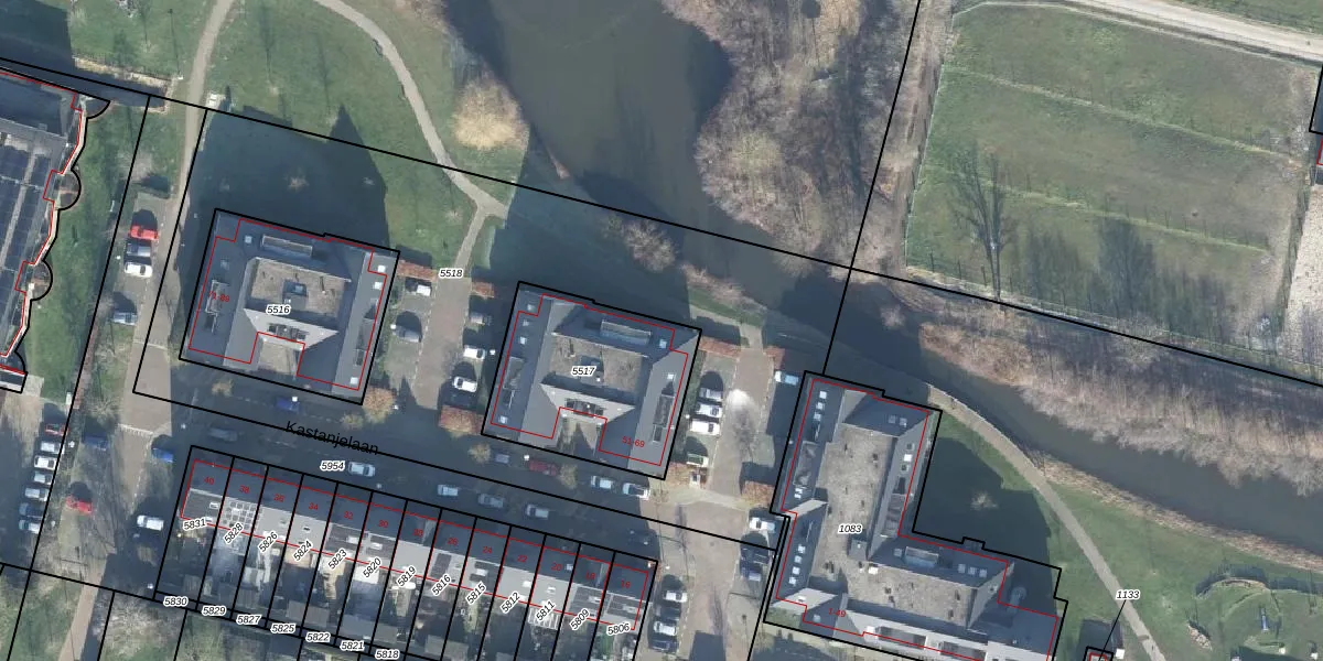Kastanjelaan 53 is gelegen op kadastraal perceel WDB02B5517. Deze kadastrale aanduiding is uniek en wordt gebruikt door het Kadaster om eigendomsrechten en andere zakelijke rechten vast te leggen. Het perceel maakt onderdeel uit van de kadastrale gemeente Woudenberg.