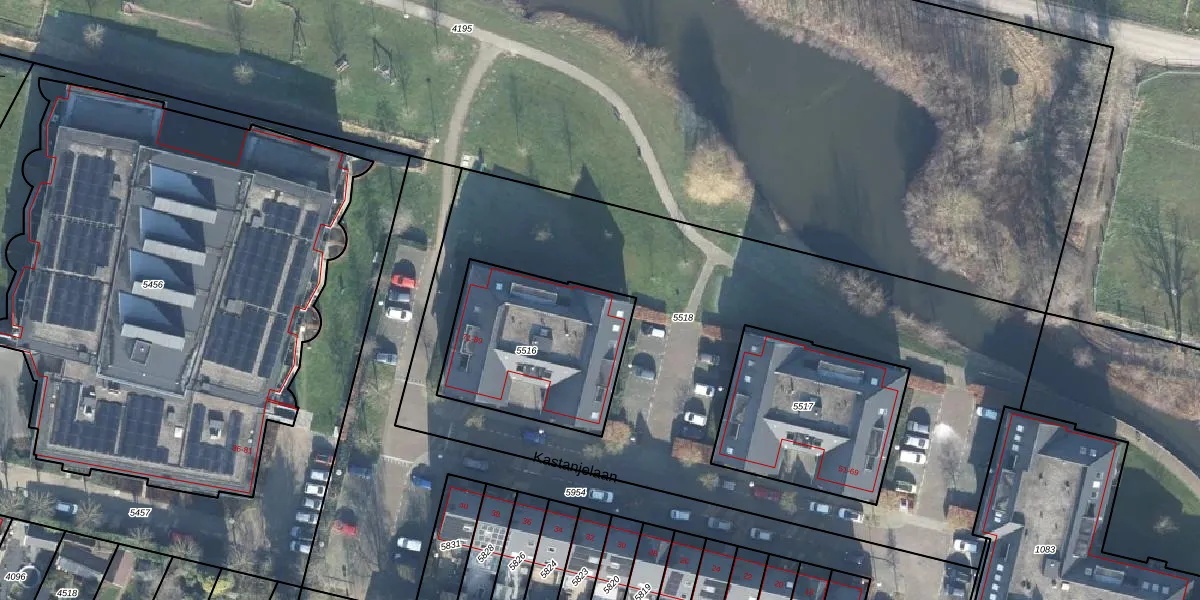 Kastanjelaan 71 is gelegen op kadastraal perceel WDB02B5516. Deze kadastrale aanduiding is uniek en wordt gebruikt door het Kadaster om eigendomsrechten en andere zakelijke rechten vast te leggen. Het perceel maakt onderdeel uit van de kadastrale gemeente Woudenberg.