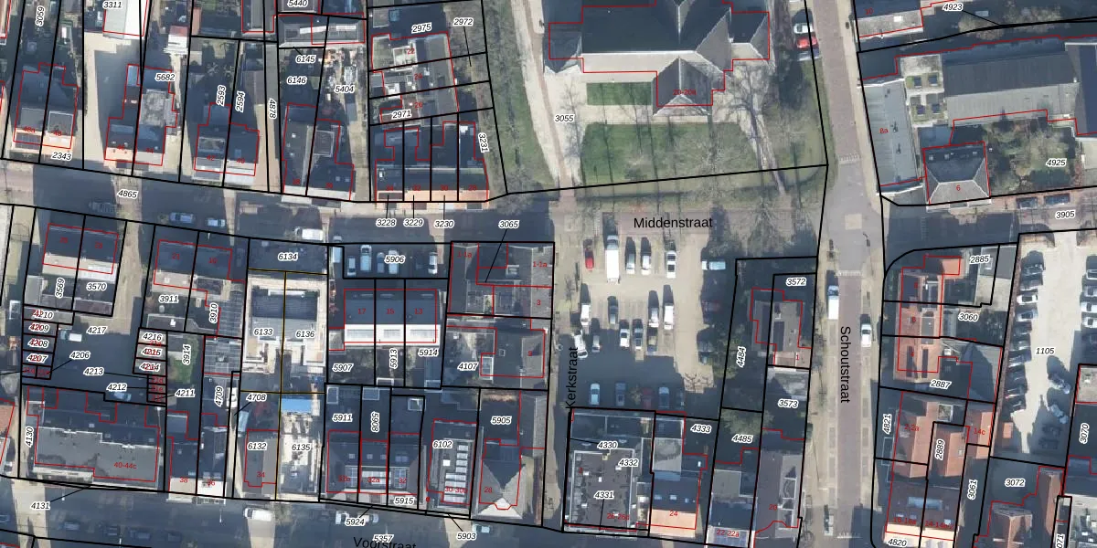 Kerkstraat 1 is gelegen op kadastraal perceel WDB02B3065. Deze kadastrale aanduiding is uniek en wordt gebruikt door het Kadaster om eigendomsrechten en andere zakelijke rechten vast te leggen. Het perceel maakt onderdeel uit van de kadastrale gemeente Woudenberg.
