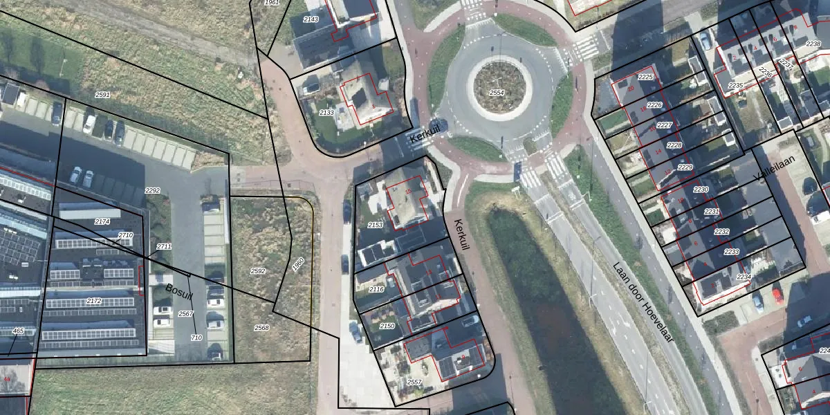 Het perceel waarop Kerkuil 15 staat heeft een oppervlakte van 448 m². Dit is een groot perceel. De perceeloppervlakte wordt geregistreerd door het Kadaster. Gedetailleerde informatie over de maten van dit perceel kunt u vinden in het rapport Kadastrale kaart met maatvoering van Kerkuil 15.