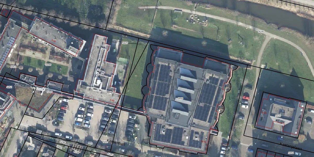 Het perceel waarop Kersentuin 41 staat heeft een oppervlakte van 3022 m². Dit is een zeer groot perceel. De perceeloppervlakte wordt geregistreerd door het Kadaster. Gedetailleerde informatie over de maten van dit perceel kunt u vinden in het rapport Kadastrale kaart met maatvoering van Kersentuin 41.