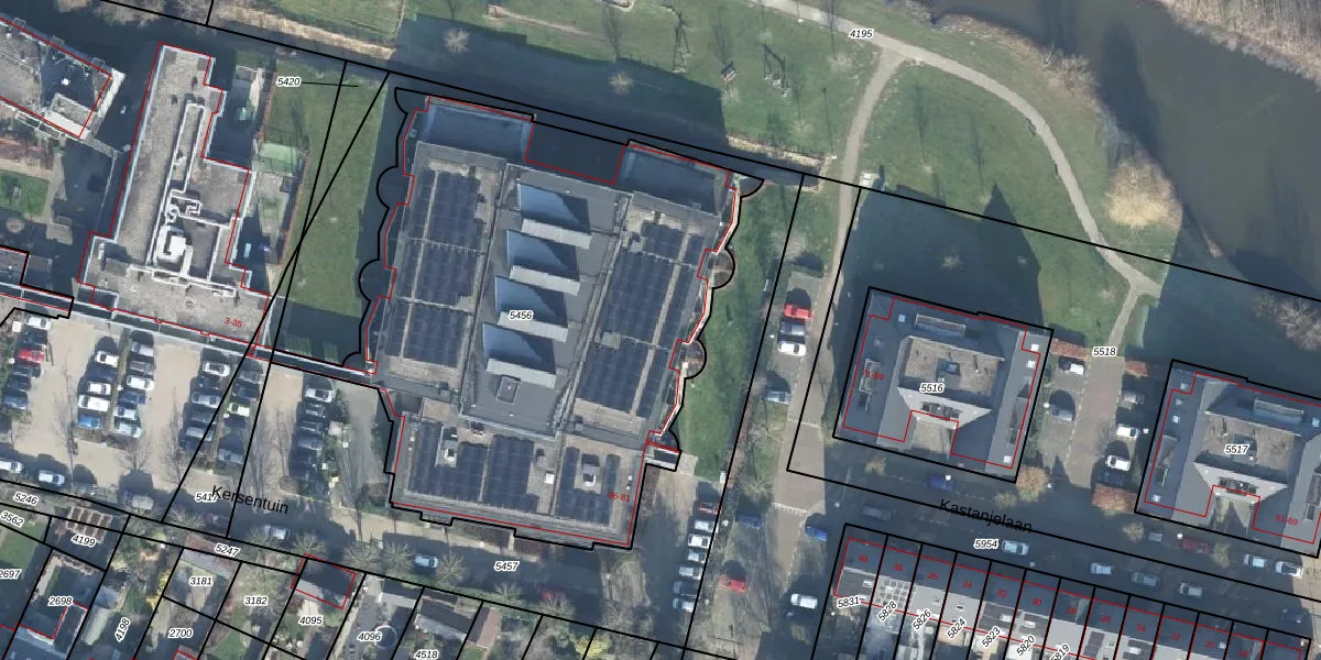 Kersentuin 47 is gelegen op kadastraal perceel WDB02B5456. Deze kadastrale aanduiding is uniek en wordt gebruikt door het Kadaster om eigendomsrechten en andere zakelijke rechten vast te leggen. Het perceel maakt onderdeel uit van de kadastrale gemeente Woudenberg.