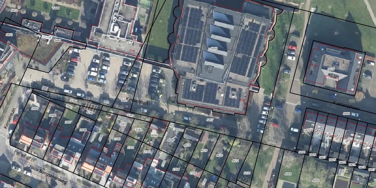 Het perceel waarop Kersentuin 54 staat heeft een oppervlakte van 3022 m². Dit is een zeer groot perceel. De perceeloppervlakte wordt geregistreerd door het Kadaster. Gedetailleerde informatie over de maten van dit perceel kunt u vinden in het rapport Kadastrale kaart met maatvoering van Kersentuin 54.