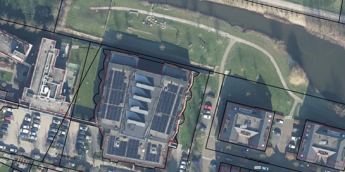 Het perceel waarop Kersentuin 62 staat heeft een oppervlakte van 3022 m². Dit is een zeer groot perceel. De perceeloppervlakte wordt geregistreerd door het Kadaster. Gedetailleerde informatie over de maten van dit perceel kunt u vinden in het rapport Kadastrale kaart met maatvoering van Kersentuin 62.