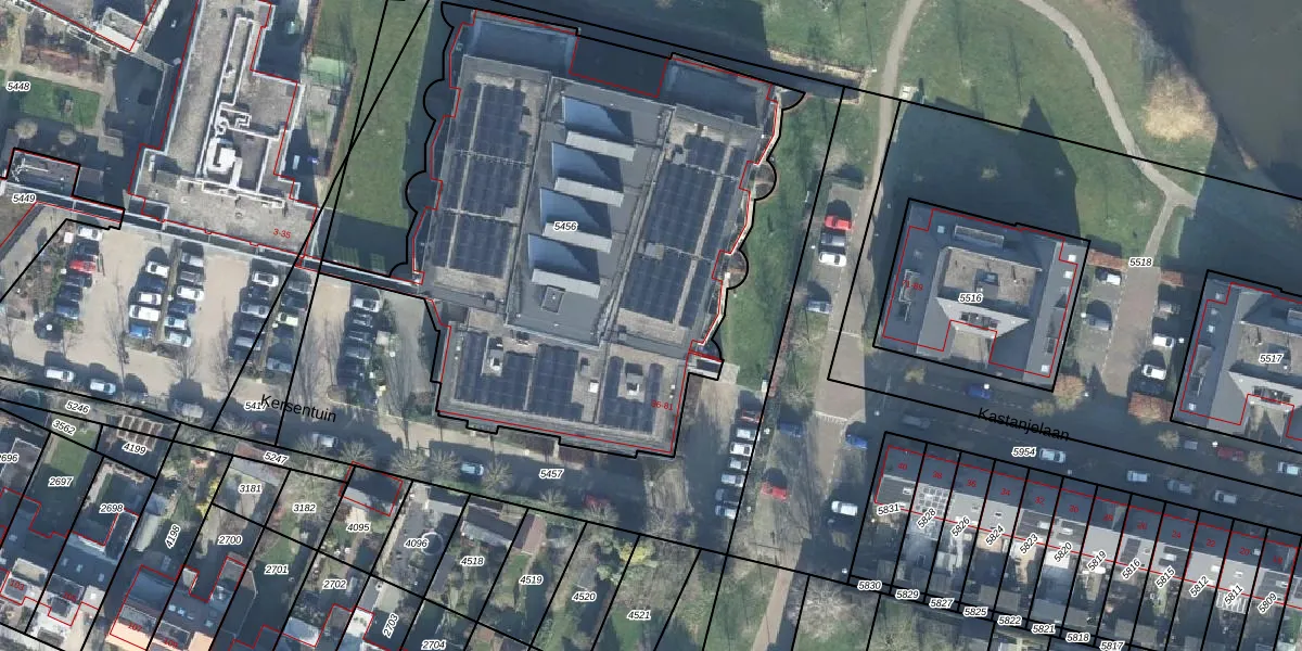 Het perceel waarop Kersentuin 66 staat heeft een oppervlakte van 3022 m². Dit is een zeer groot perceel. De perceeloppervlakte wordt geregistreerd door het Kadaster. Gedetailleerde informatie over de maten van dit perceel kunt u vinden in het rapport Kadastrale kaart met maatvoering van Kersentuin 66.