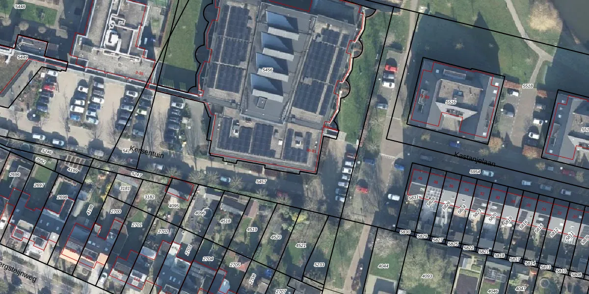 Het perceel waarop Kersentuin 67 staat heeft een oppervlakte van 3022 m². Dit is een zeer groot perceel. De perceeloppervlakte wordt geregistreerd door het Kadaster. Gedetailleerde informatie over de maten van dit perceel kunt u vinden in het rapport Kadastrale kaart met maatvoering van Kersentuin 67.