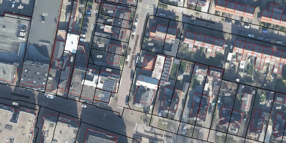 Het perceel waarop Koningin Emmastraat 6 staat heeft een oppervlakte van 643 m². Dit is een groot perceel. De perceeloppervlakte wordt geregistreerd door het Kadaster. Gedetailleerde informatie over de maten van dit perceel kunt u vinden in het rapport Kadastrale kaart met maatvoering van Koningin Emmastraat 6.