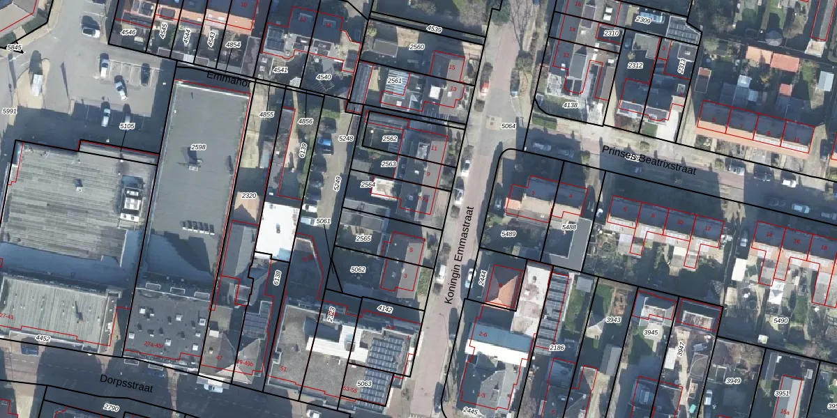 Koningin Emmastraat 7 is gelegen op kadastraal perceel WDB02B2564. Deze kadastrale aanduiding is uniek en wordt gebruikt door het Kadaster om eigendomsrechten en andere zakelijke rechten vast te leggen. Het perceel maakt onderdeel uit van de kadastrale gemeente Woudenberg.