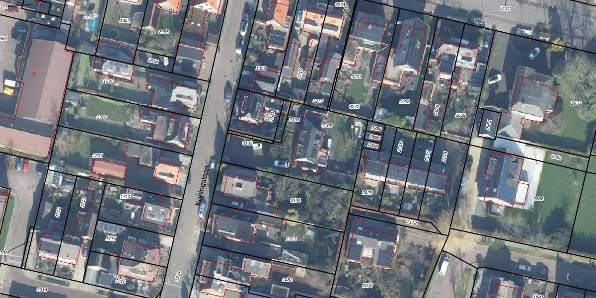 Het perceel waarop Koningslaan 3 staat heeft een oppervlakte van 842 m². Dit is een groot perceel. De perceeloppervlakte wordt geregistreerd door het Kadaster. Gedetailleerde informatie over de maten van dit perceel kunt u vinden in het rapport Kadastrale kaart met maatvoering van Koningslaan 3.