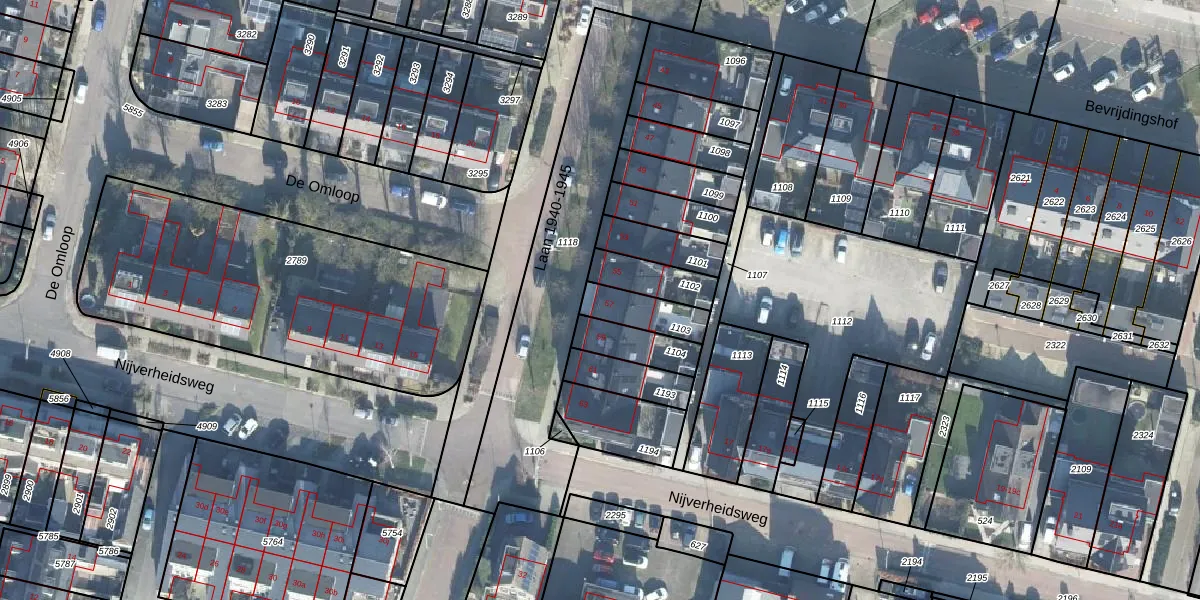 Gebruik de zoekbalk of klik op een perceel voor informatie over de adressen binnen dit perceel.