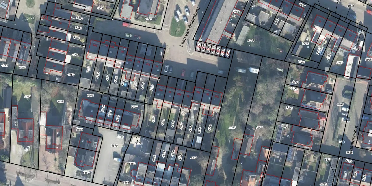 Gebruik de zoekbalk of klik op een perceel voor informatie over de adressen binnen dit perceel.