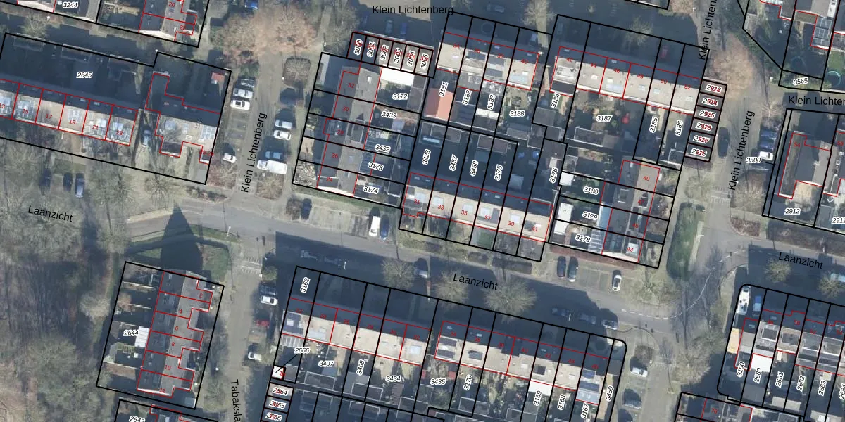 Gebruik de zoekbalk of klik op een perceel voor informatie over de adressen binnen dit perceel.