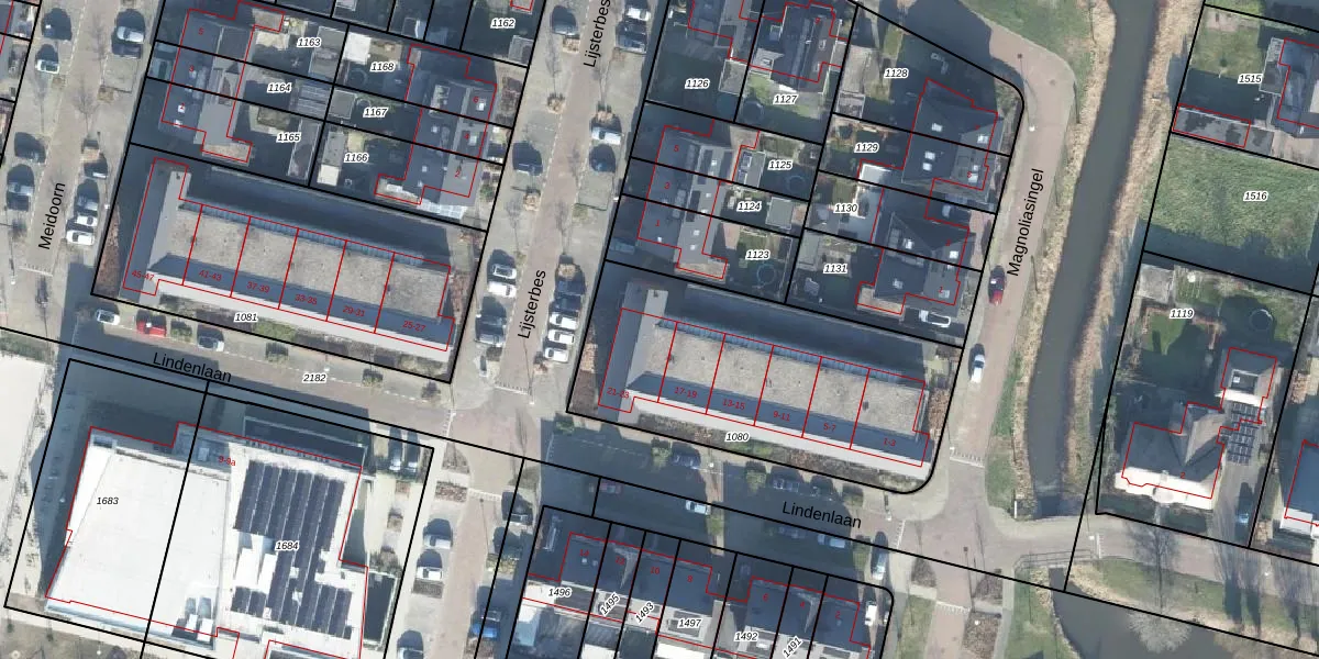 Het perceel waarop Lindenlaan 23 staat heeft een oppervlakte van 1322 m². Dit is een zeer groot perceel. De perceeloppervlakte wordt geregistreerd door het Kadaster. Gedetailleerde informatie over de maten van dit perceel kunt u vinden in het rapport Kadastrale kaart met maatvoering van Lindenlaan 23.
