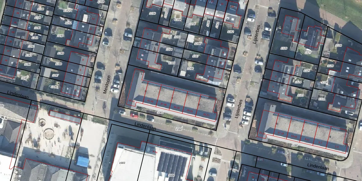 Het perceel waarop Lindenlaan 33 staat heeft een oppervlakte van 1324 m². Dit is een zeer groot perceel. De perceeloppervlakte wordt geregistreerd door het Kadaster. Gedetailleerde informatie over de maten van dit perceel kunt u vinden in het rapport Kadastrale kaart met maatvoering van Lindenlaan 33.
