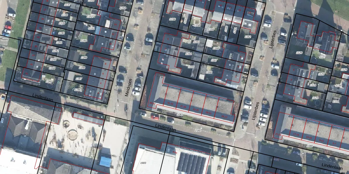 Het perceel waarop Lindenlaan 41 staat heeft een oppervlakte van 1324 m². Dit is een zeer groot perceel. De perceeloppervlakte wordt geregistreerd door het Kadaster. Gedetailleerde informatie over de maten van dit perceel kunt u vinden in het rapport Kadastrale kaart met maatvoering van Lindenlaan 41.