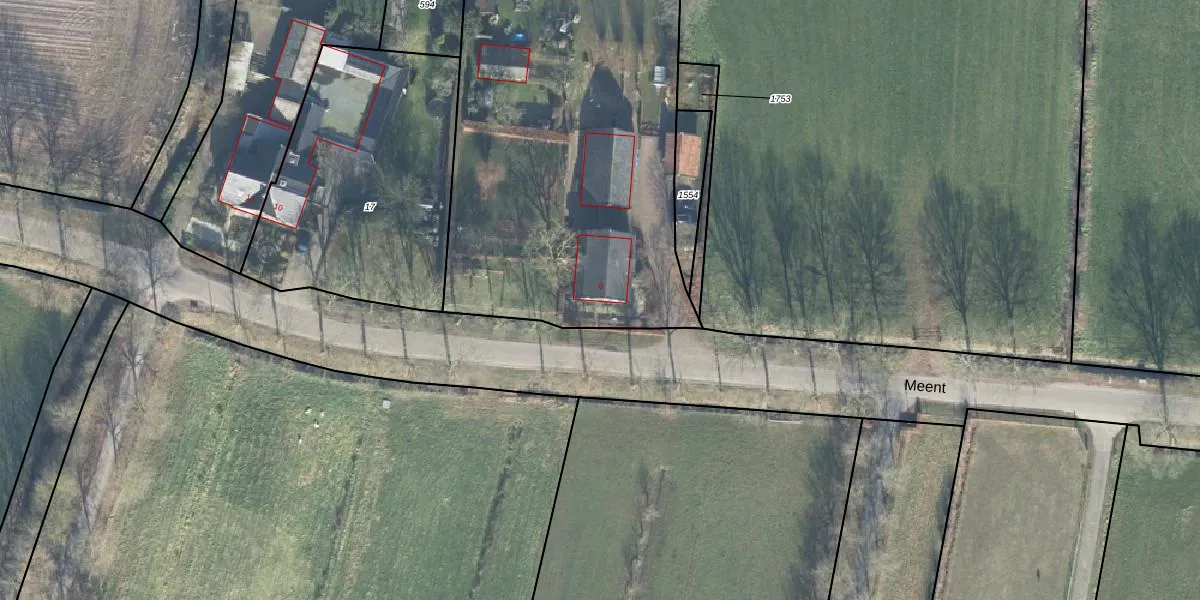 Het perceel waarop Meent 6 staat heeft een oppervlakte van 4590 m². Dit is een zeer groot perceel. De perceeloppervlakte wordt geregistreerd door het Kadaster. Gedetailleerde informatie over de maten van dit perceel kunt u vinden in het rapport Kadastrale kaart met maatvoering van Meent 6.