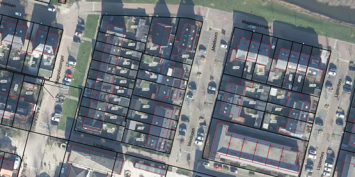 Gebruik de zoekbalk of klik op een perceel voor informatie over de adressen binnen dit perceel.