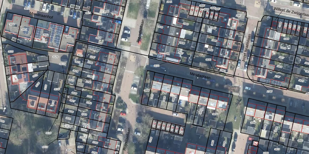 Gebruik de zoekbalk of klik op een perceel voor informatie over de adressen binnen dit perceel.