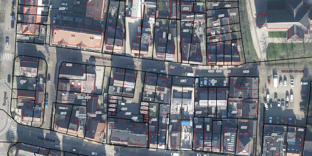 Het perceel waarop Middenstraat 21 staat heeft een oppervlakte van 148 m². Dit is een middelgroot perceel. De perceeloppervlakte wordt geregistreerd door het Kadaster. Gedetailleerde informatie over de maten van dit perceel kunt u vinden in het rapport Kadastrale kaart met maatvoering van Middenstraat 21.
