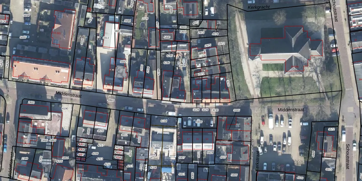 Het perceel waarop Middenstraat 36 staat heeft een oppervlakte van 313 m². Dit is een groot perceel. De perceeloppervlakte wordt geregistreerd door het Kadaster. Gedetailleerde informatie over de maten van dit perceel kunt u vinden in het rapport Kadastrale kaart met maatvoering van Middenstraat 36.