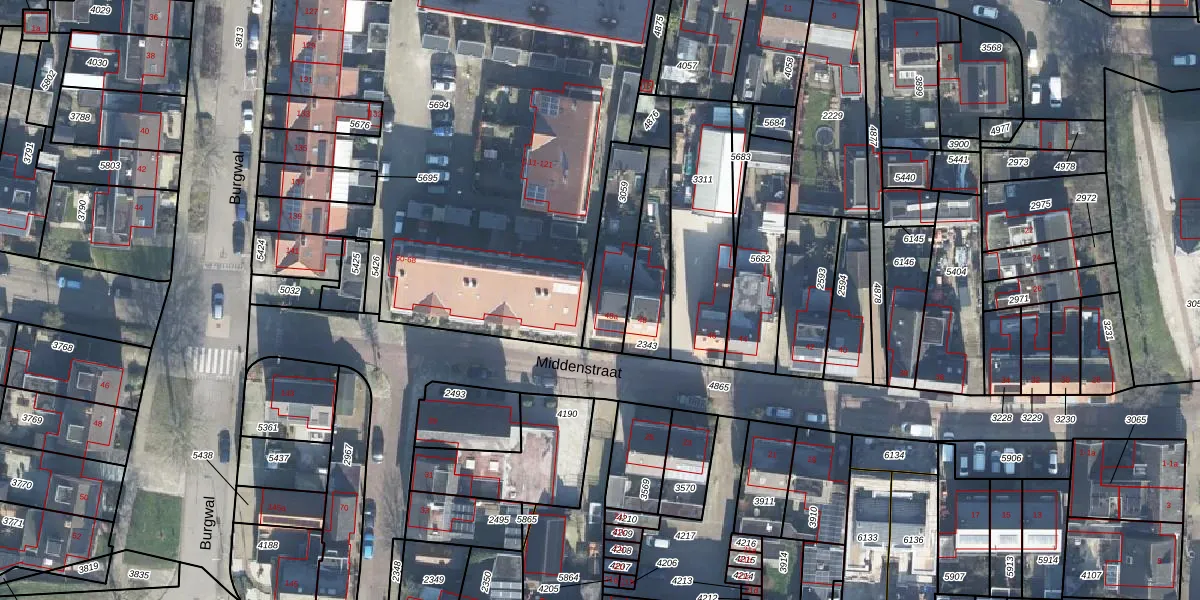 Het perceel waarop Middenstraat 48-a staat heeft een oppervlakte van 220 m². Dit is een middelgroot perceel. De perceeloppervlakte wordt geregistreerd door het Kadaster. Gedetailleerde informatie over de maten van dit perceel kunt u vinden in het rapport Kadastrale kaart met maatvoering van Middenstraat 48-a.