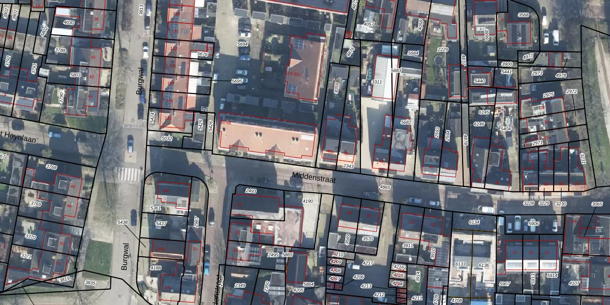 Het perceel waarop Middenstraat 50 staat heeft een oppervlakte van 3394 m². Dit is een zeer groot perceel. De perceeloppervlakte wordt geregistreerd door het Kadaster. Gedetailleerde informatie over de maten van dit perceel kunt u vinden in het rapport Kadastrale kaart met maatvoering van Middenstraat 50.