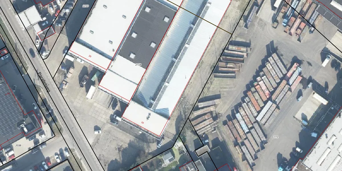 Het perceel waarop Parallelweg 20-r staat heeft een oppervlakte van 7325 m². Dit is een zeer groot perceel. De perceeloppervlakte wordt geregistreerd door het Kadaster. Gedetailleerde informatie over de maten van dit perceel kunt u vinden in het rapport Kadastrale kaart met maatvoering van Parallelweg 20-r.