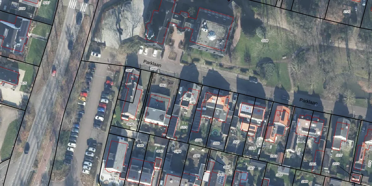 Parklaan 12 is gelegen op kadastraal perceel WDB02E1273. Deze kadastrale aanduiding is uniek en wordt gebruikt door het Kadaster om eigendomsrechten en andere zakelijke rechten vast te leggen. Het perceel maakt onderdeel uit van de kadastrale gemeente Woudenberg.