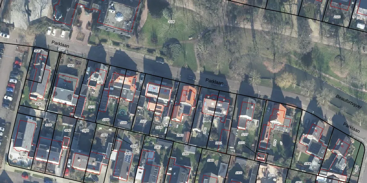 Het perceel waarop Parklaan 22 staat heeft een oppervlakte van 400 m². Dit is een groot perceel. De perceeloppervlakte wordt geregistreerd door het Kadaster. Gedetailleerde informatie over de maten van dit perceel kunt u vinden in het rapport Kadastrale kaart met maatvoering van Parklaan 22.