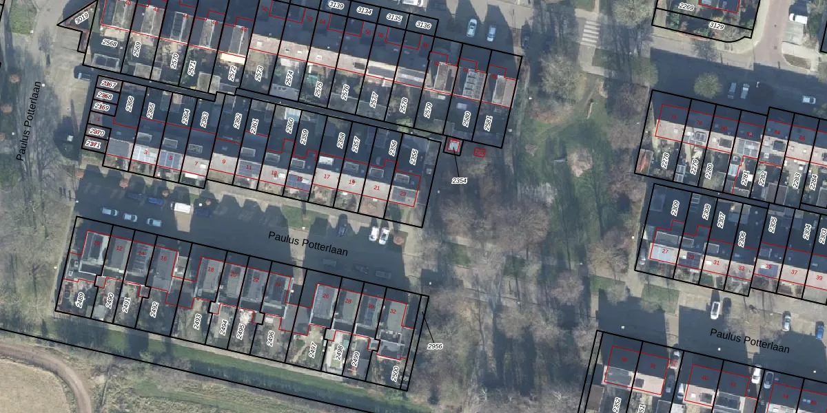 Gebruik de zoekbalk of klik op een perceel voor informatie over de adressen binnen dit perceel.