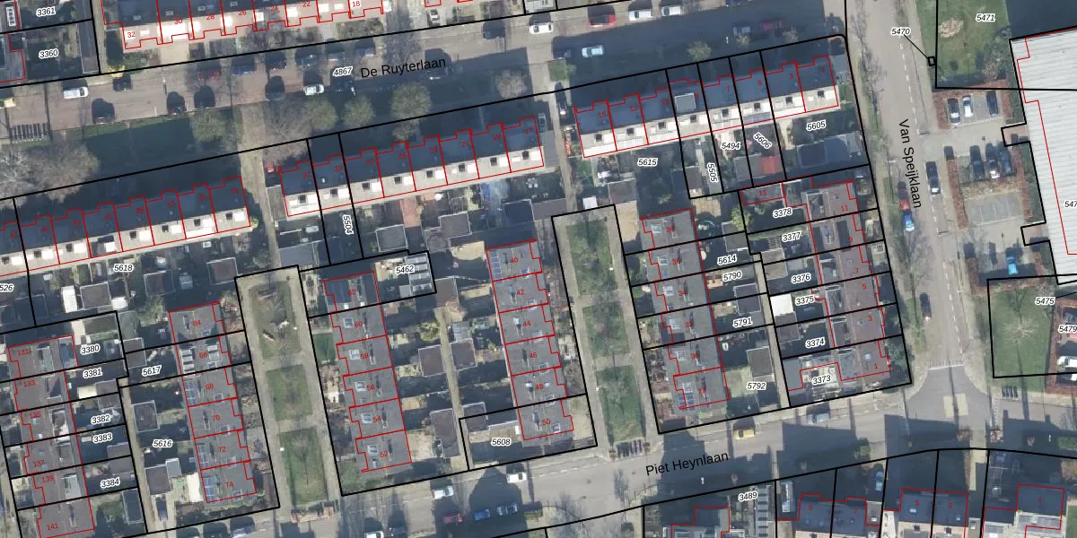 Het perceel waarop Piet Heynlaan 40 staat heeft een oppervlakte van 3248 m². Dit is een zeer groot perceel. De perceeloppervlakte wordt geregistreerd door het Kadaster. Gedetailleerde informatie over de maten van dit perceel kunt u vinden in het rapport Kadastrale kaart met maatvoering van Piet Heynlaan 40.