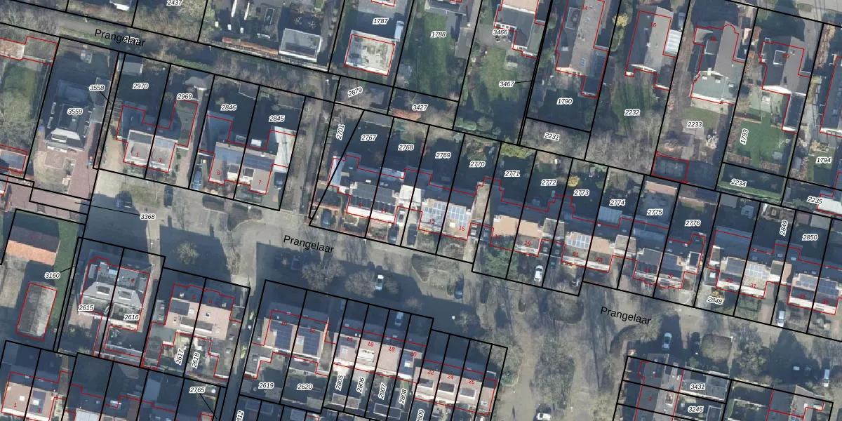 Prangelaar 13 is gelegen op kadastraal perceel WDB02E2769. Deze kadastrale aanduiding is uniek en wordt gebruikt door het Kadaster om eigendomsrechten en andere zakelijke rechten vast te leggen. Het perceel maakt onderdeel uit van de kadastrale gemeente Woudenberg.
