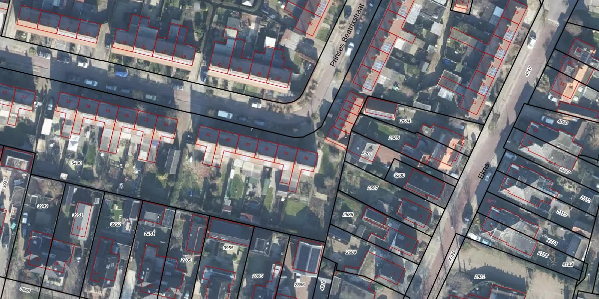 Prinses Beatrixstraat 36 is gelegen op kadastraal perceel WDB02B5490. Deze kadastrale aanduiding is uniek en wordt gebruikt door het Kadaster om eigendomsrechten en andere zakelijke rechten vast te leggen. Het perceel maakt onderdeel uit van de kadastrale gemeente Woudenberg.