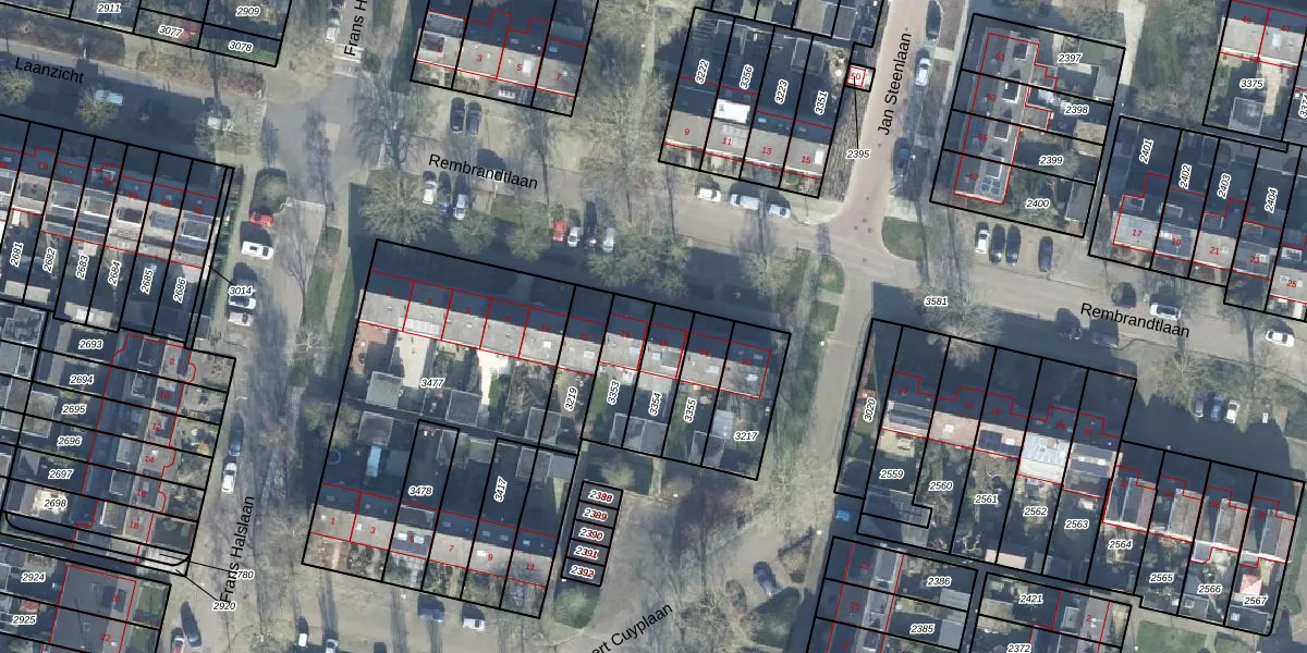 Gebruik de zoekbalk of klik op een perceel voor informatie over de adressen binnen dit perceel.