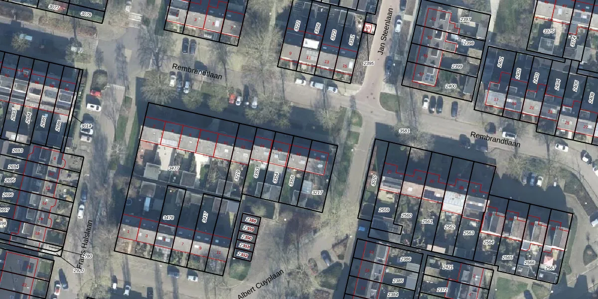 Het perceel waarop Rembrandtlaan 18 staat heeft een oppervlakte van 143 m². Dit is een middelgroot perceel. De perceeloppervlakte wordt geregistreerd door het Kadaster. Gedetailleerde informatie over de maten van dit perceel kunt u vinden in het rapport Kadastrale kaart met maatvoering van Rembrandtlaan 18.