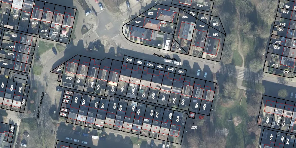 Het perceel waarop Rembrandtlaan 54 staat heeft een oppervlakte van 163 m². Dit is een middelgroot perceel. De perceeloppervlakte wordt geregistreerd door het Kadaster. Gedetailleerde informatie over de maten van dit perceel kunt u vinden in het rapport Kadastrale kaart met maatvoering van Rembrandtlaan 54.