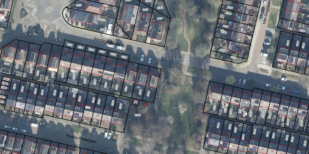 Gebruik de zoekbalk of klik op een perceel voor informatie over de adressen binnen dit perceel.