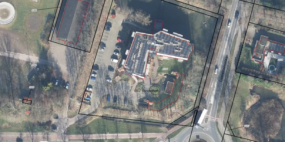 Het perceel waarop Ridderhof 27 staat heeft een oppervlakte van 6470 m². Dit is een zeer groot perceel. De perceeloppervlakte wordt geregistreerd door het Kadaster. Gedetailleerde informatie over de maten van dit perceel kunt u vinden in het rapport Kadastrale kaart met maatvoering van Ridderhof 27.