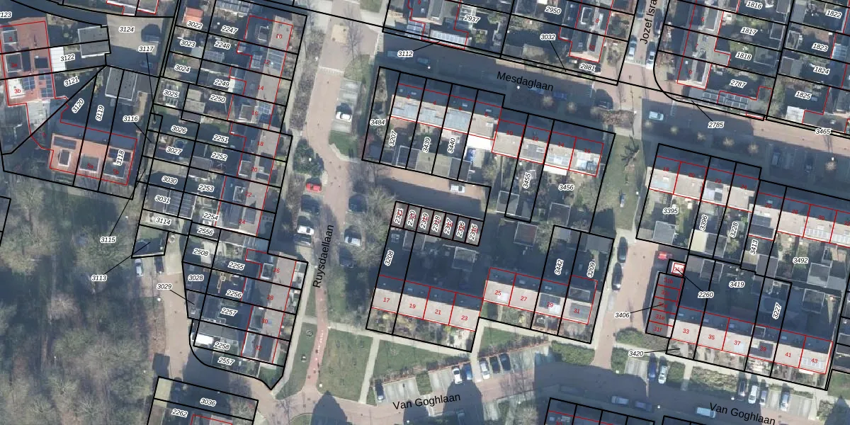 Het perceel waarop Ruysdaellaan 15 staat heeft een oppervlakte van 18 m². Dit is een klein perceel. De perceeloppervlakte wordt geregistreerd door het Kadaster. Gedetailleerde informatie over de maten van dit perceel kunt u vinden in het rapport Kadastrale kaart met maatvoering van Ruysdaellaan 15.