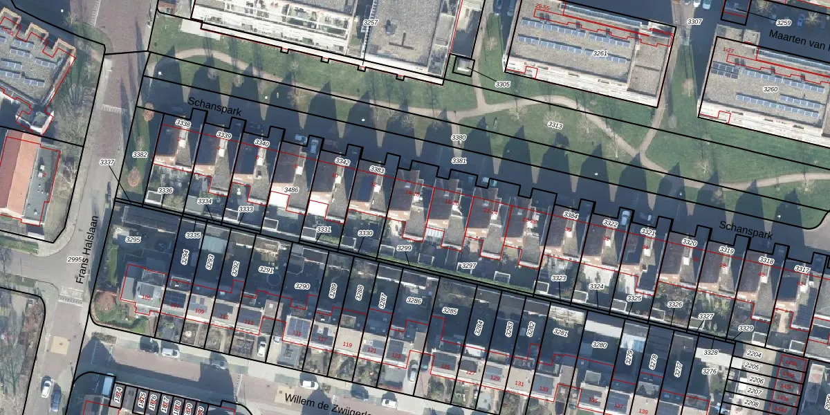 Het perceel waarop Schanspark 16 staat heeft een oppervlakte van 935 m². Dit is een groot perceel. De perceeloppervlakte wordt geregistreerd door het Kadaster. Gedetailleerde informatie over de maten van dit perceel kunt u vinden in het rapport Kadastrale kaart met maatvoering van Schanspark 16.