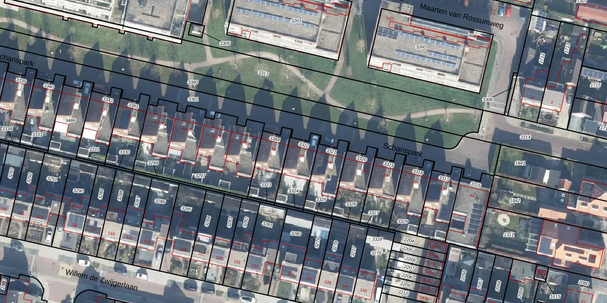 Gebruik de zoekbalk of klik op een perceel voor informatie over de adressen binnen dit perceel.