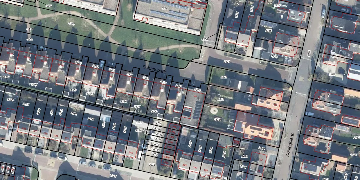 Het perceel waarop Schanspark 42 staat heeft een oppervlakte van 225 m². Dit is een middelgroot perceel. De perceeloppervlakte wordt geregistreerd door het Kadaster. Gedetailleerde informatie over de maten van dit perceel kunt u vinden in het rapport Kadastrale kaart met maatvoering van Schanspark 42.