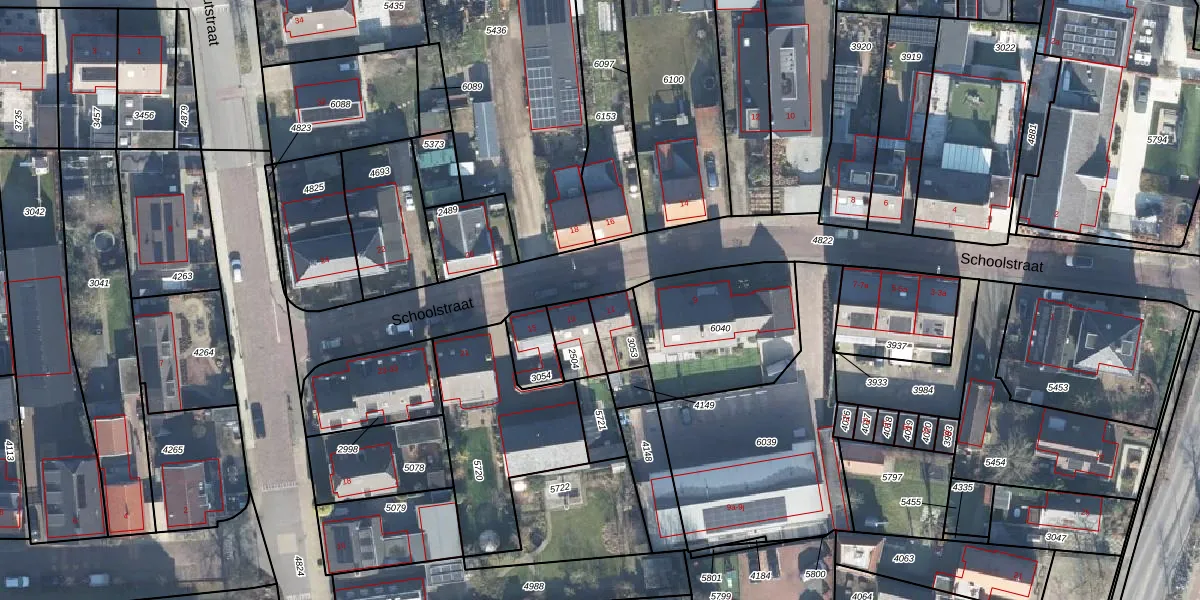 Schoolstraat 11 is gelegen op kadastraal perceel WDB02B3053. Deze kadastrale aanduiding is uniek en wordt gebruikt door het Kadaster om eigendomsrechten en andere zakelijke rechten vast te leggen. Het perceel maakt onderdeel uit van de kadastrale gemeente Woudenberg.