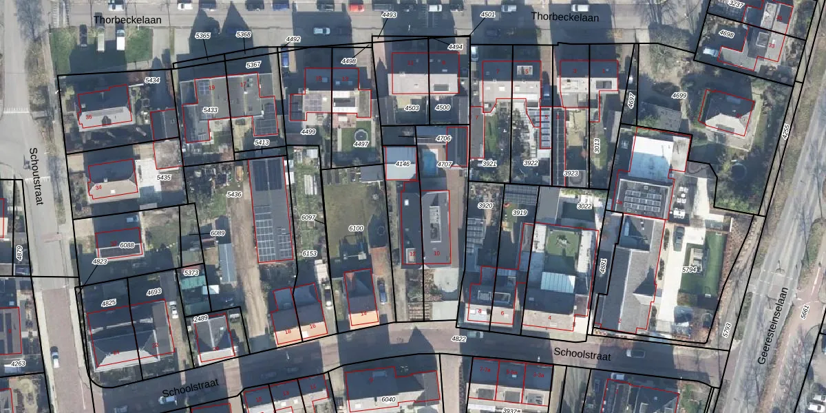 Het perceel waarop Schoolstraat 12 staat heeft een oppervlakte van 335 m². Dit is een groot perceel. De perceeloppervlakte wordt geregistreerd door het Kadaster. Gedetailleerde informatie over de maten van dit perceel kunt u vinden in het rapport Kadastrale kaart met maatvoering van Schoolstraat 12.